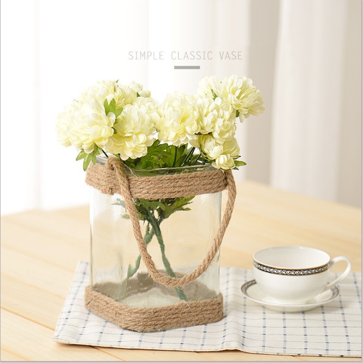 | Description | Hot sale square Glass vase Glass square jar decoration with rope |